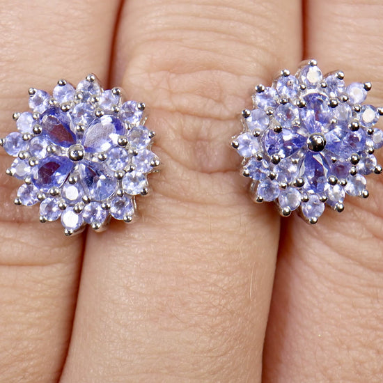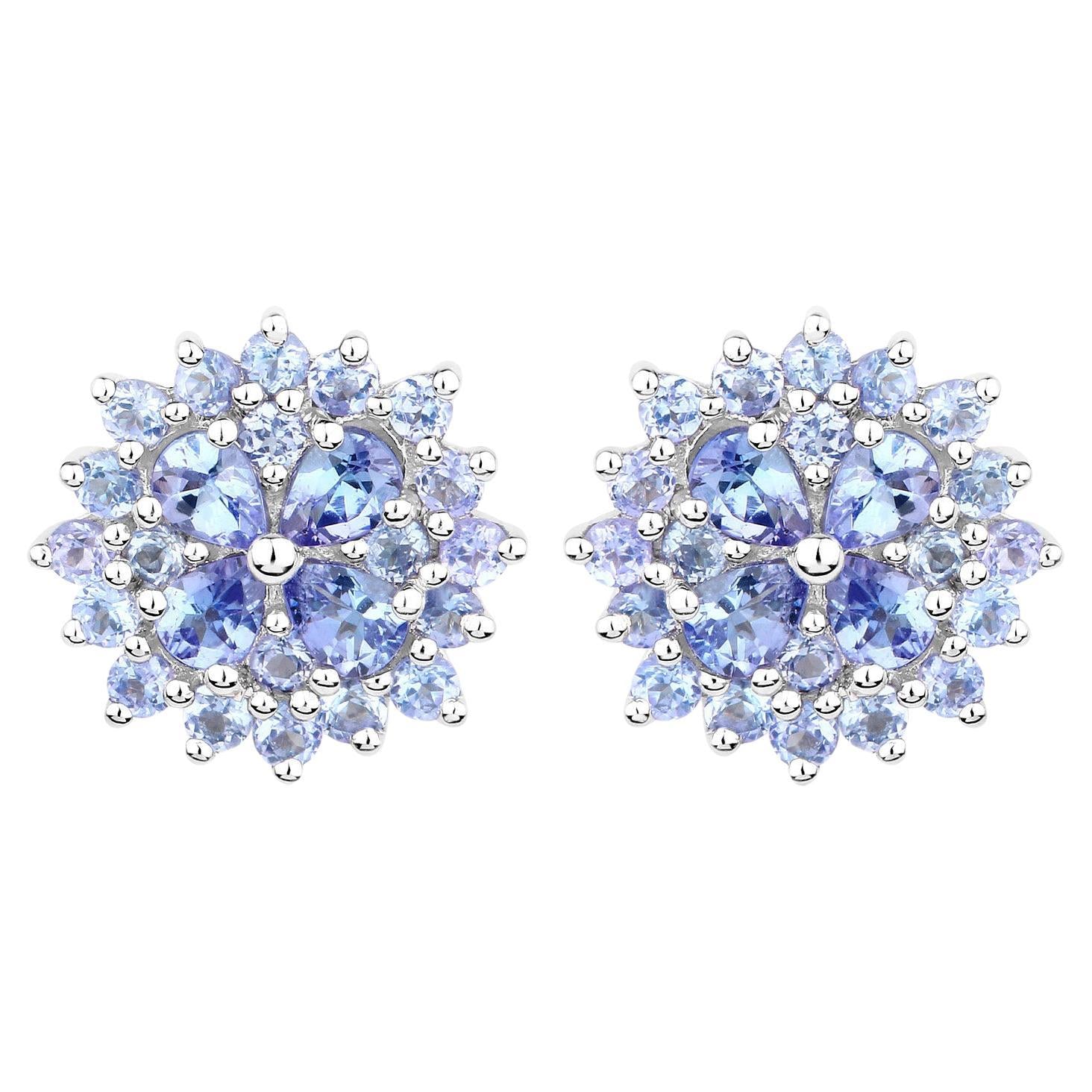 Tanzanite Cluster Stud Earrings 2.55 Carats