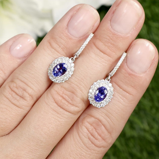 Tanzanite Dangle Earrings Diamond Setting 2.5 Carats Total