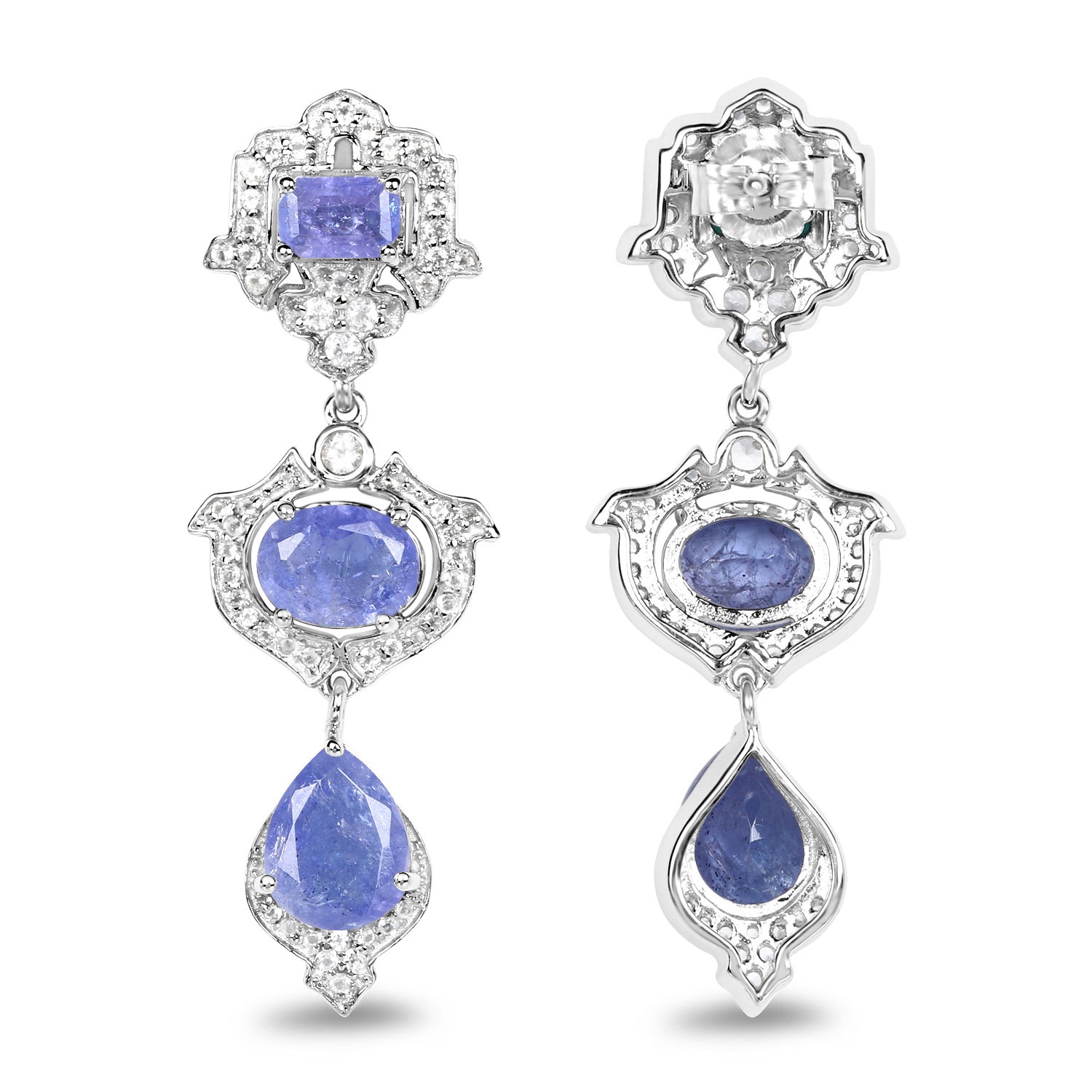 Tanzanite Dangle Earrings White Topaz 9.55 Carats Sterling Silver