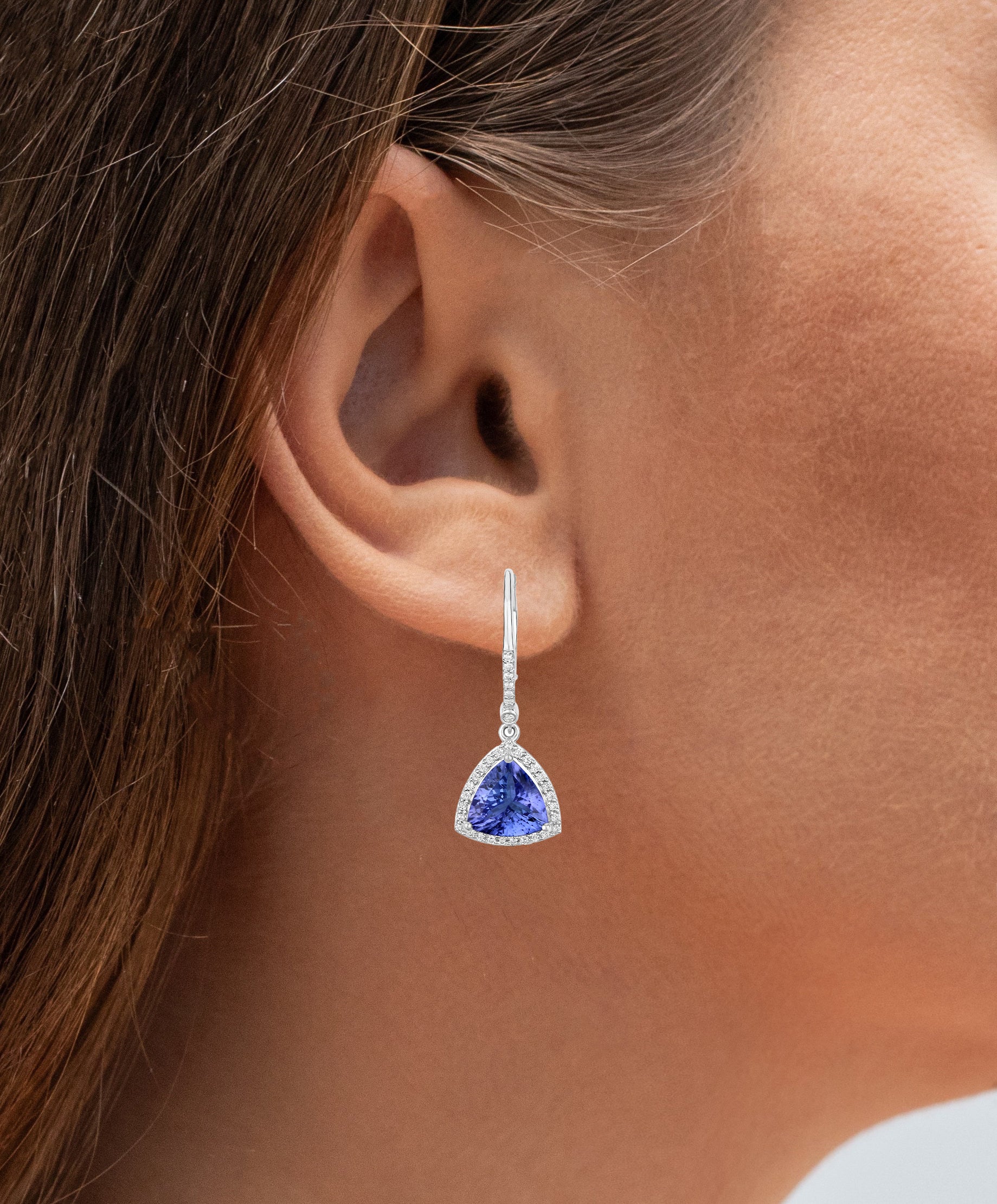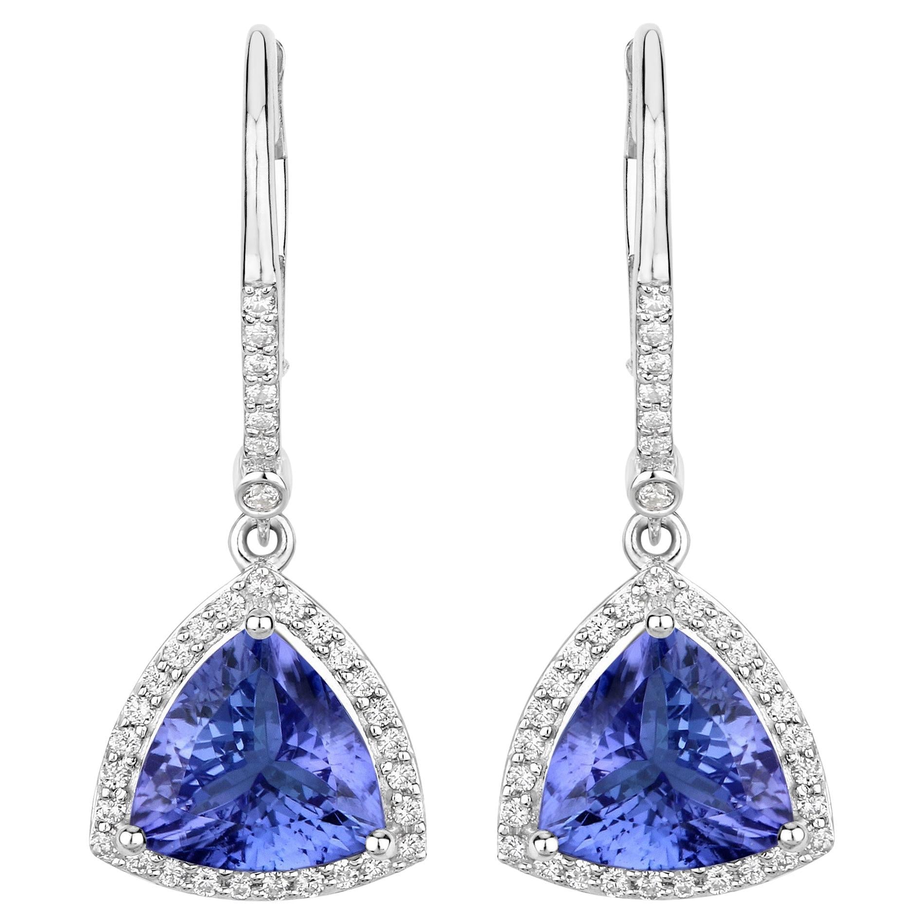 Tanzanite Dangle Earrings With Diamonds 4.61 Carats 14K White Gold