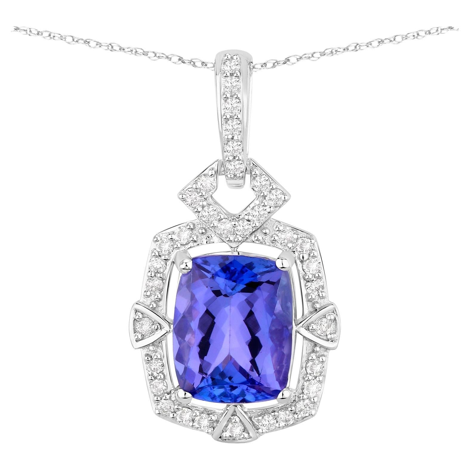 Tanzanite Pendant Necklace Diamonds 2.45 Carats 14K White Gold