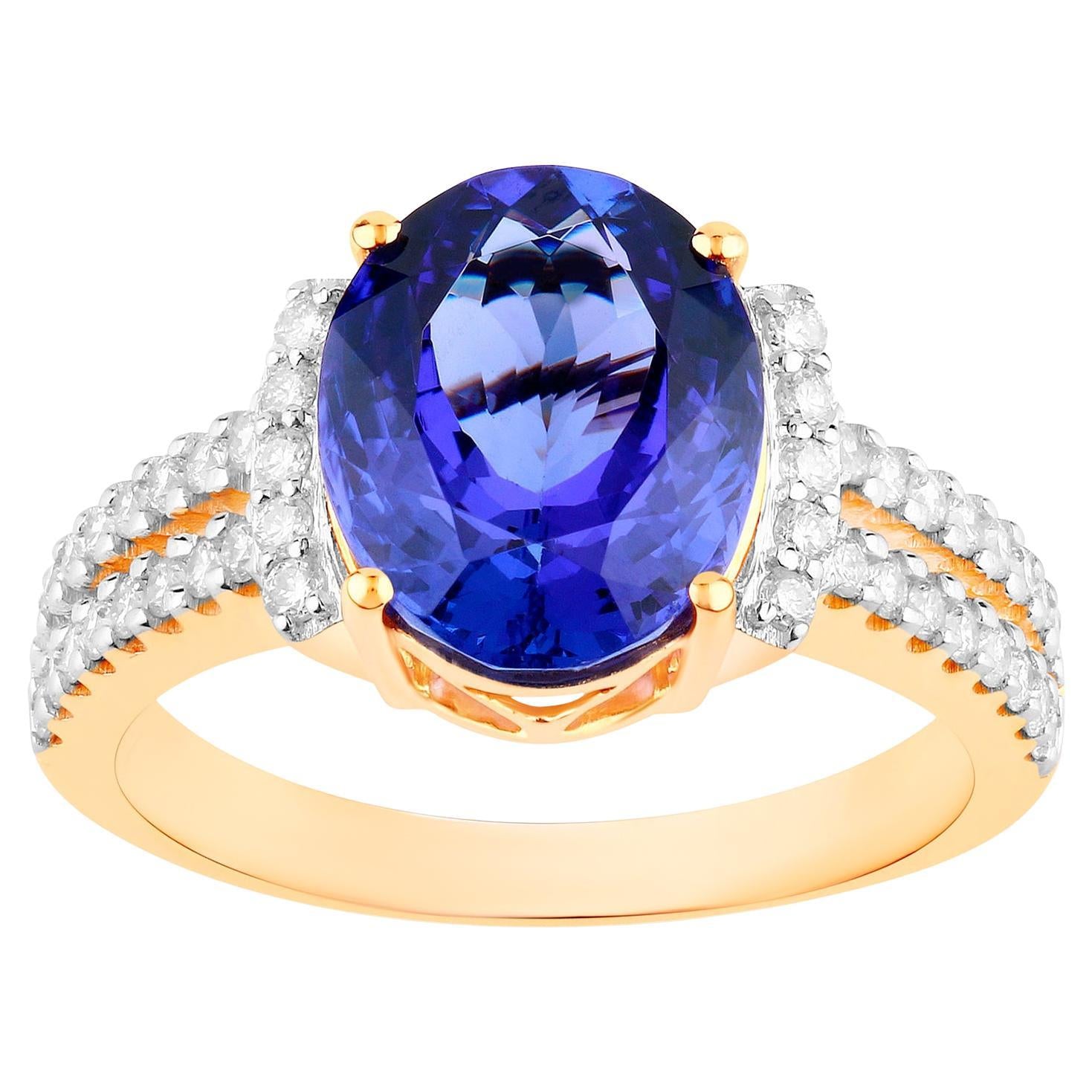 Tanzanite Ring Diamonds 4.18 Carats 14K Yellow Gold