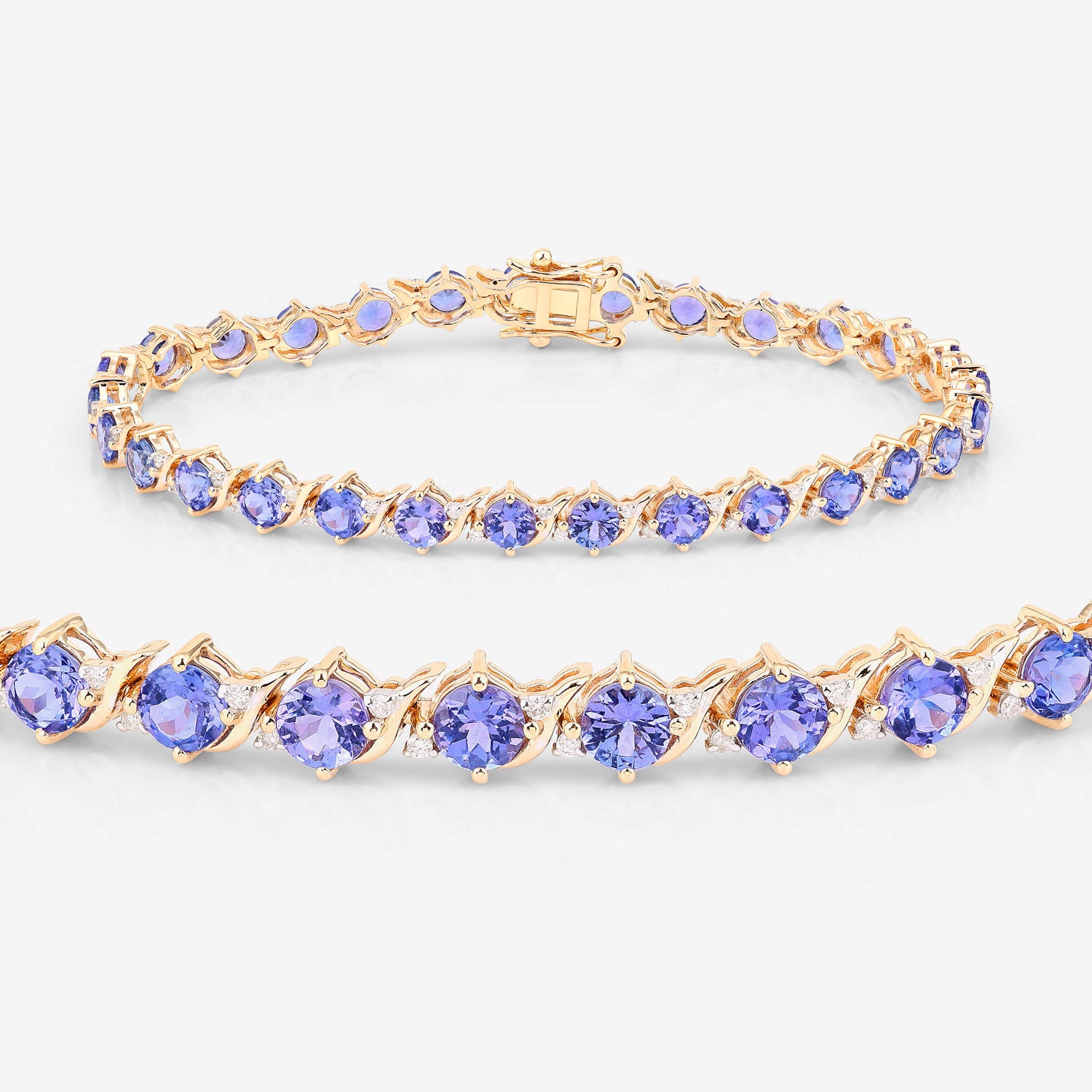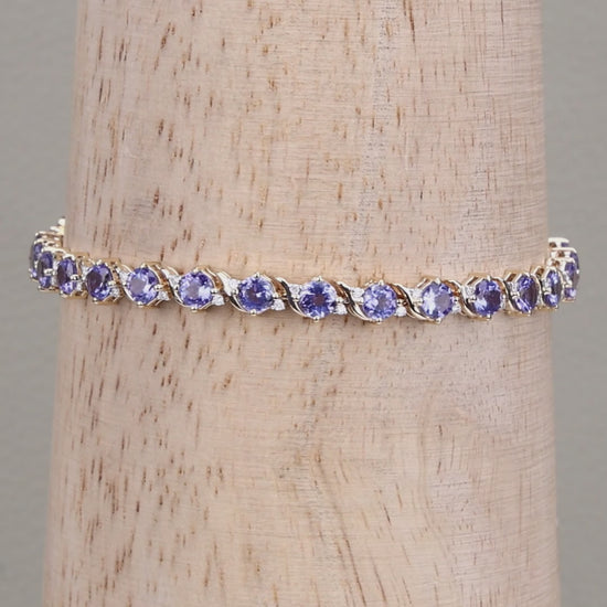 Tanzanite Tennis Bracelet Diamonds 6.9 Carats 14K Yellow Gold