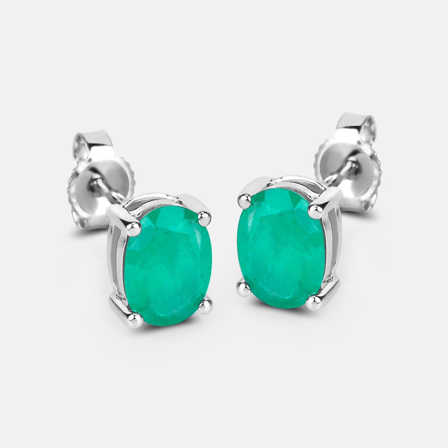 Zambian Emerald Earrings 1.42 Carats 10K White Gold