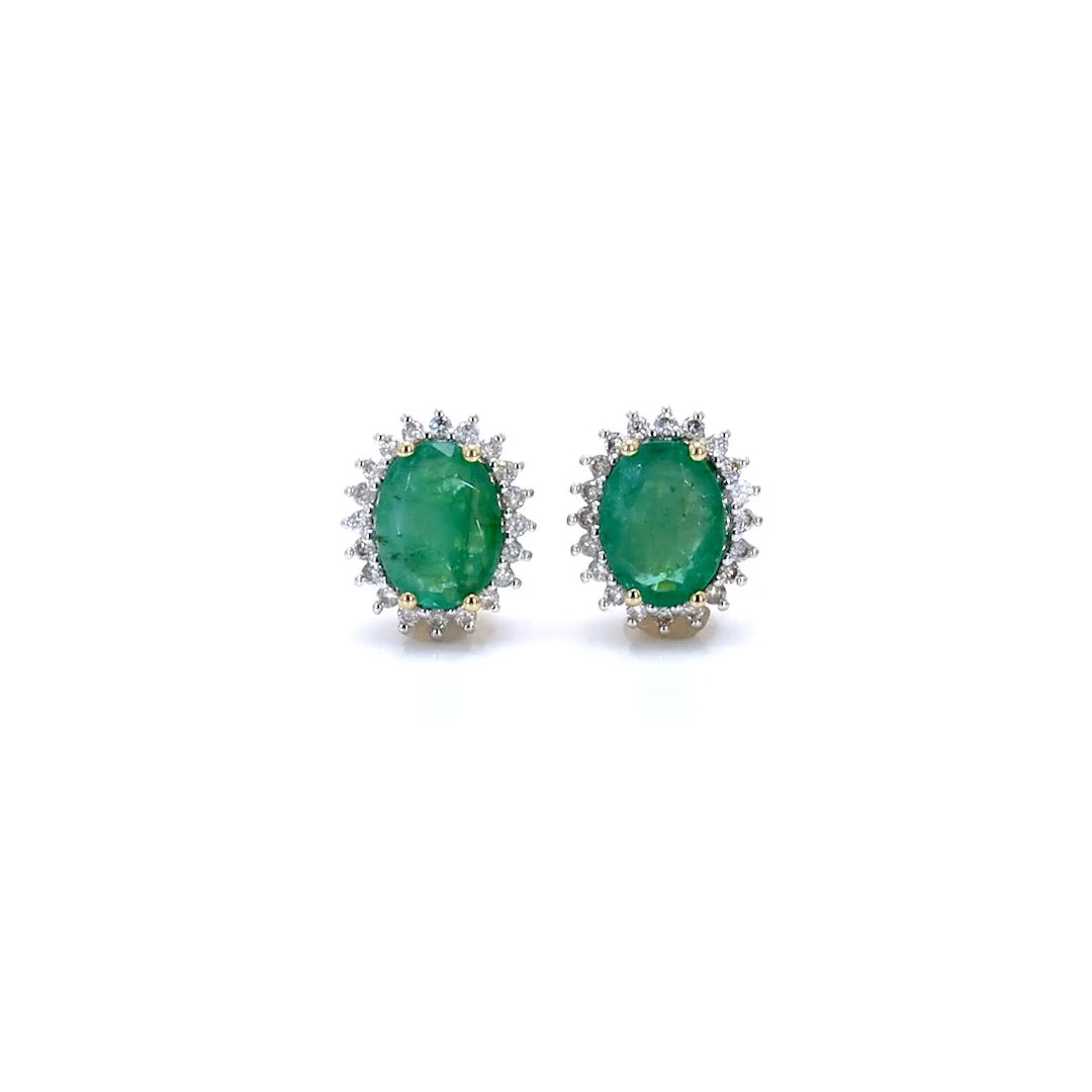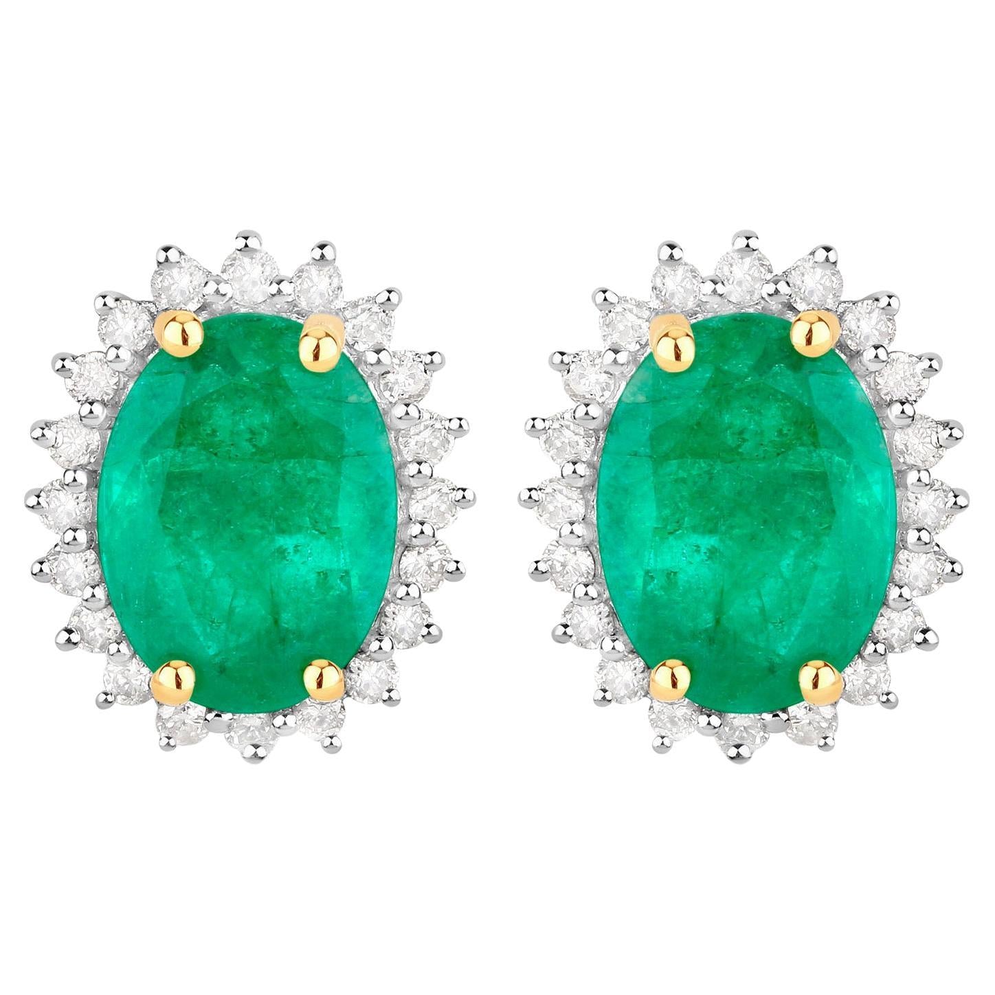 Zambian Emerald Earrings Diamonds 2.65 Carats 14K Yellow Gold