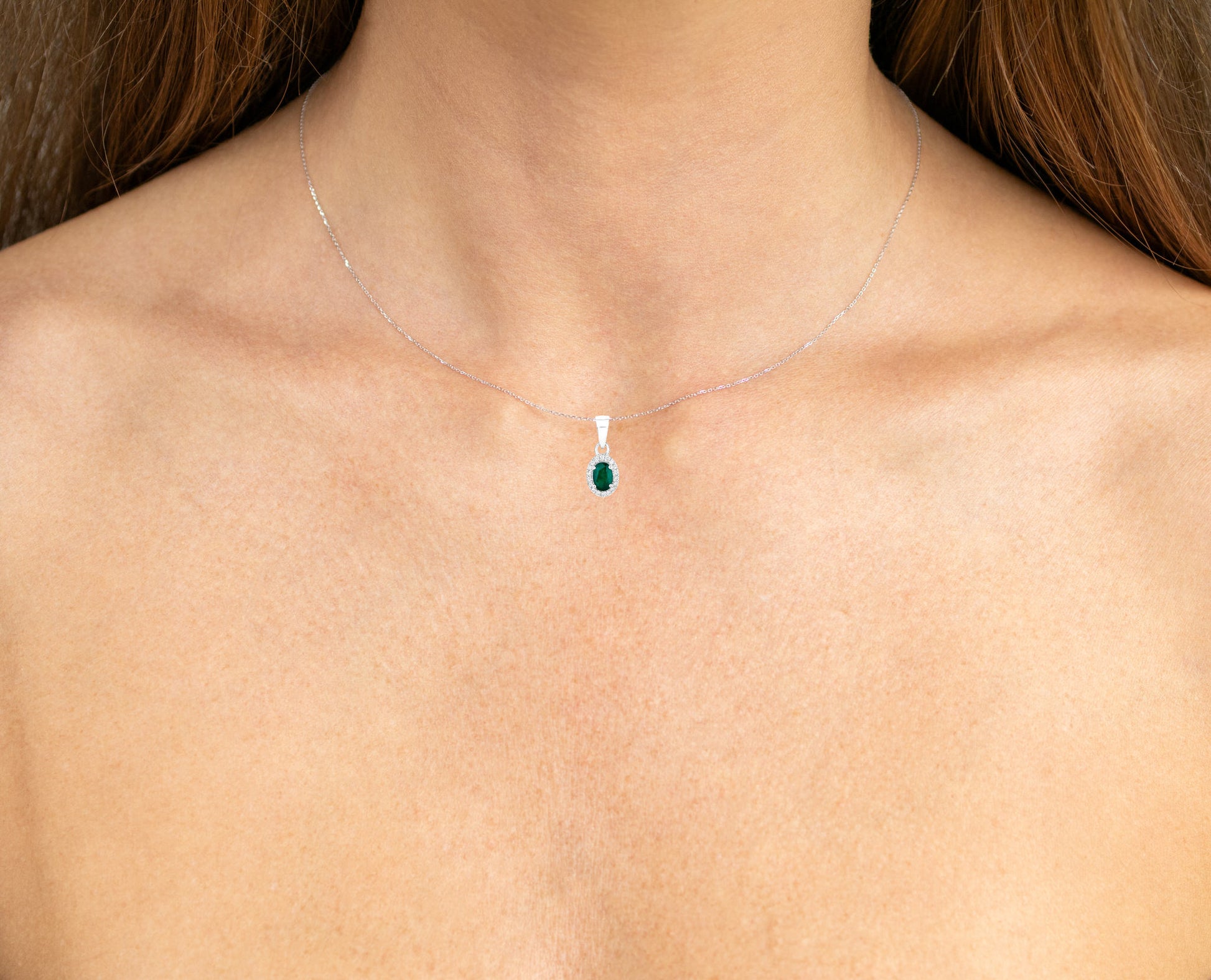 Zambian Emerald Pendant Necklace With Diamonds 0.81 Carats 14K White Gold