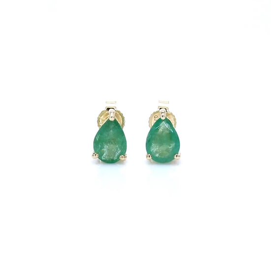 Zambian Emerald Stud Earrings 1.29 Carats 10K Yellow Gold